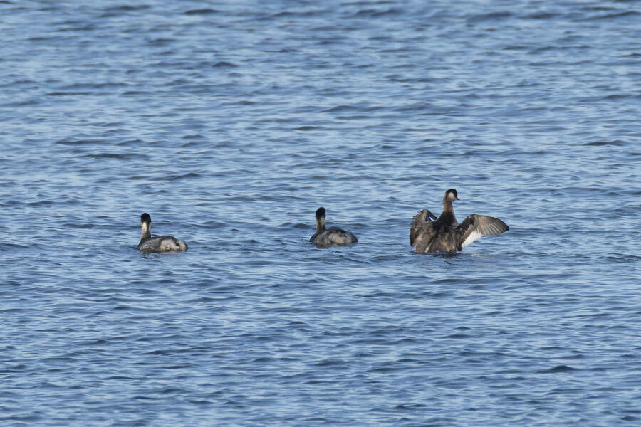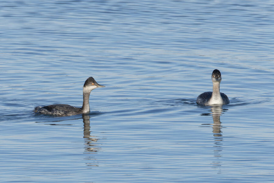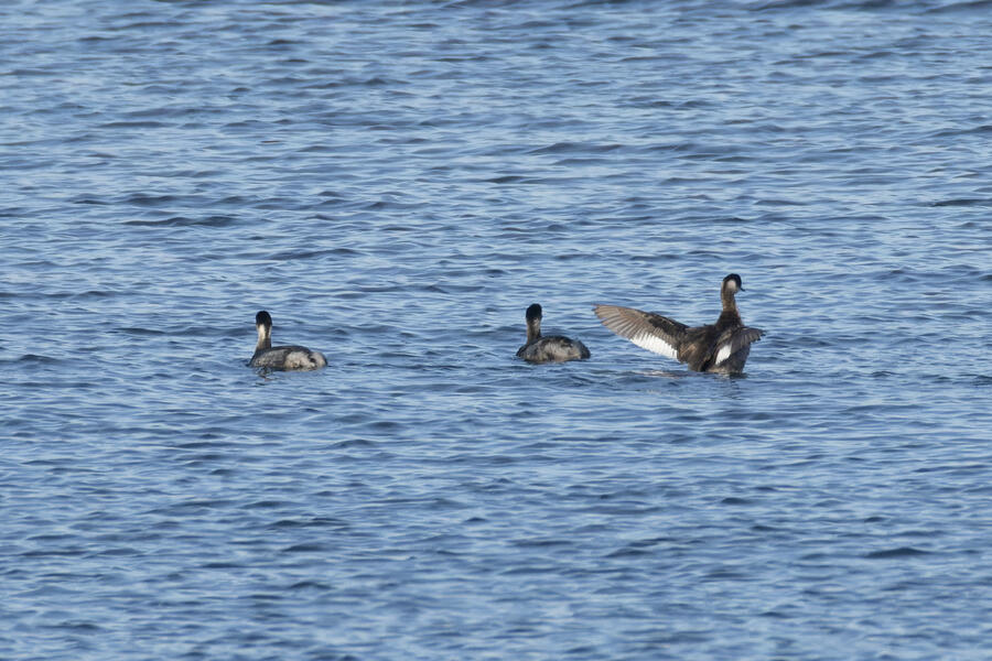 I also had a fun time watching and photographing a small flock of Western Bluebirds, got photos of some Eared Grebes (a new county bird!), and managed to get a phone picture of a Eurasian Collared-Dove from the yard (a new yard bird!).