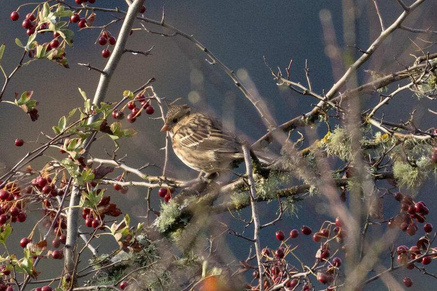 On other outings with my normal 200-800 I was able to find some sparrows to shoot: a Fox Sparrow (uncommon here) and a Harris's Sparrow (rare here). I also saw a couple dozen California Quail flying briefly together, which was pretty cool! (I don't know how they're able to run as fast as they do!)