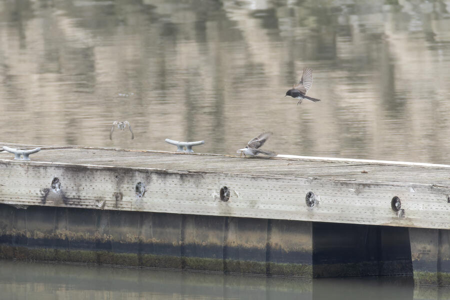 I saw this pair of Least Sandpipers on the dock, and as I was taking their photo a Black Phoebe flew in and scared them off!