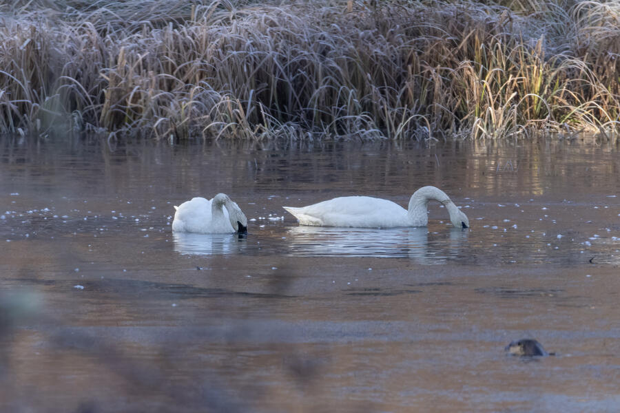 It's been cold and dry here, and I am fortunate to have seen a few good birds recently including Short-billed Gull on a brief visit to the coast and Snowy Owl on another trip. Snowy Egret and Barn Swallow were also flagged as rare in eBird. I also got good looks at a pair of lifer Trumpeter Swans!