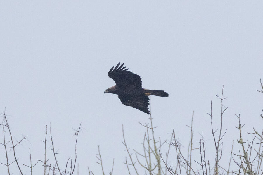 A Golden Eagle was reported near town, and I was able to go out a couple times to look for it. On the first day, I found a handful of Red-tailed Hawks, some Northern Harriers, and a distant Bald Eagle. As I was walking back to the car, I spotted another eagle coming in low... it was mostly a dark bird, perhaps good for Golden Eagle. I only had time to get a few photos before I lost sight of it. Upon reviewing the photos it was a Golden Eagle! I got such a brief look at it I had to go out again to try to see it. Later that afternoon I went to a nearby location and found only a Bald Eagle.