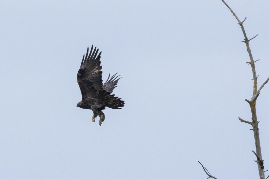 I returned the following morning and found the Golden Eagle perched in the expected location. This time, I got scope and binocular views of it, and plenty of photos. It flew around for a while and eventually settled back down on the perch again. While not a lifer (I'd seen a distant soaring Golden Eagle in November) I really appreciated getting a much longer look at this bird.