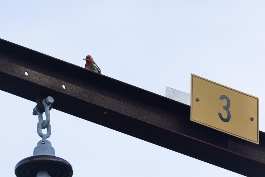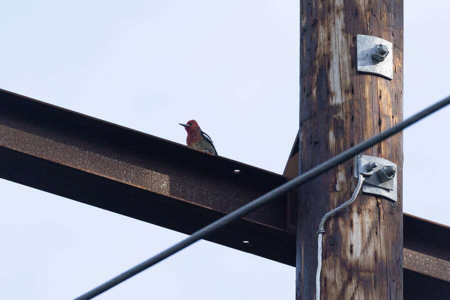 Red-breasted SapsuckerThis likely male Sapsucker was drumming on the metal beam on the power poles.